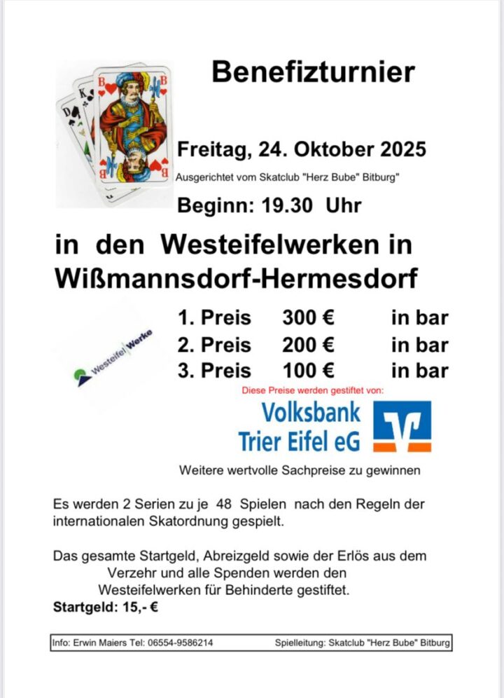 Der Skatclub „Herz Bube Bitburg“ richtet ein Benefizturnier aus.